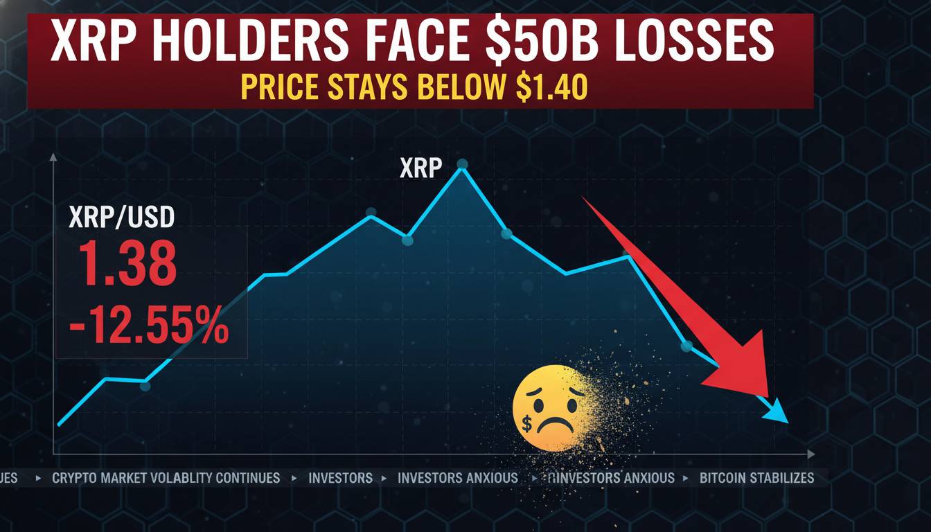 If XRP fails to recover that zone, the market may continue to test lower support levels. Recent analysis has pointed to the low-$1.30s as a critical area, with deeper downside possible if selling intensifies. In that scenario, the narrative that XRP holders face $50B in unrealized losses as it trades below $1.40 would likely remain central to market discussion because it captures the scale of investor pain embedded in current prices.